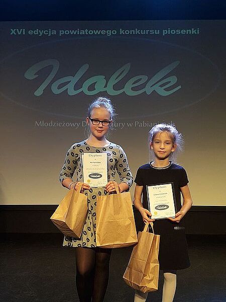 Koncert finałowy odbył się w piątek 2 lutego. Tytuł Idolka 2018 przypadł w tym roku komu innemu, ale Zuzia i Maja zaprezentowały się znakomicie, dzięki czemu Jury przyznało im wyróżnienia. Obie dziewczyny zostały również przez publiczność nagrodzone gromkimi brawami. GRATULIJEMY!